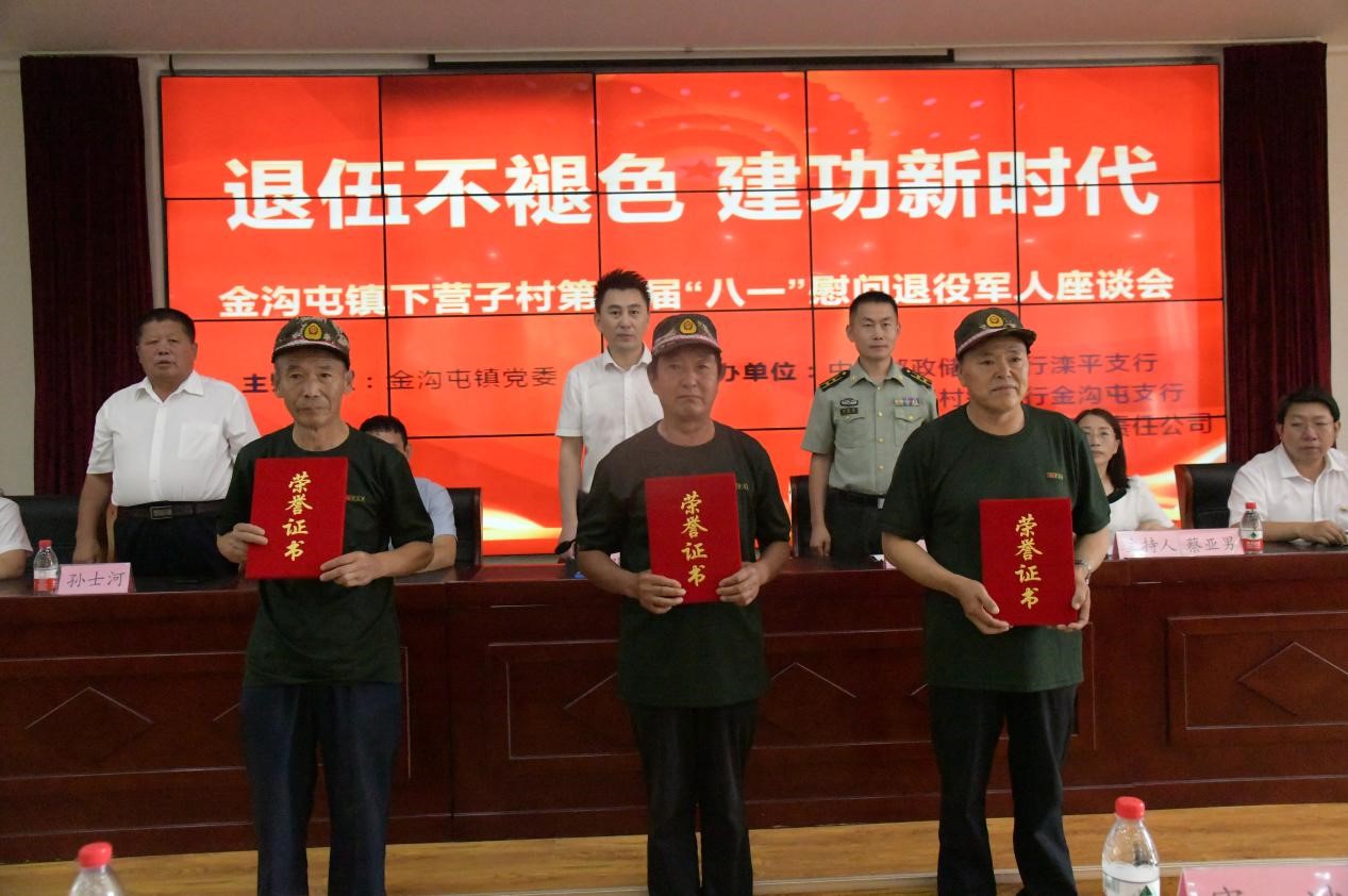 8月1日下午,灤平縣金溝屯鎮(zhèn)下營子村聯(lián)合愛心企業(yè)中國郵政儲蓄銀行灤平支行、灤平盛陽村鎮(zhèn)銀行金溝屯支行和承德久財農(nóng)牧開發(fā)有限責任公司共同舉辦了“退伍不褪色 建功新時代”第二屆“八一”慰問退役軍人座談會;顒蝇F(xiàn)場,大家歡聚一堂,共同慶祝中國人民解放軍建軍95周年,共敘魚水深情,并為優(yōu)秀退役軍人頒發(fā)榮譽證書。 王海琦 郎朗 攝