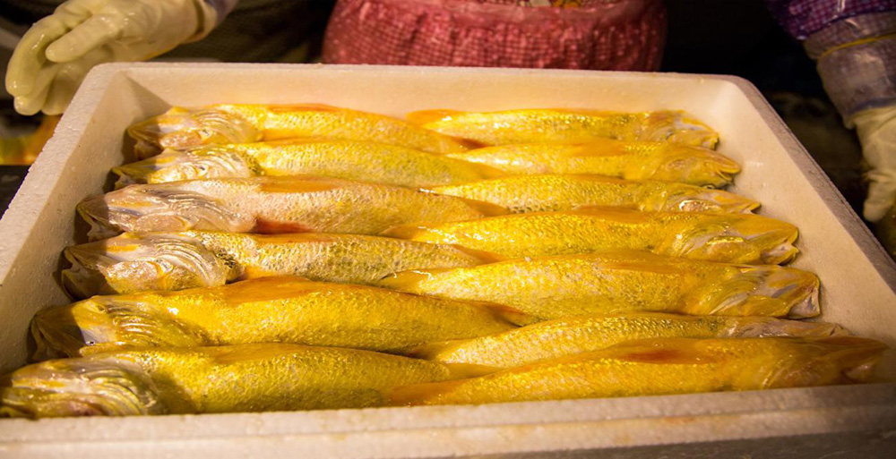 “大黃魚是我國(guó)特有的重要海洋經(jīng)濟(jì)魚類,體色金黃、唇部橘紅、肉質(zhì)細(xì)嫩、營(yíng)養(yǎng)豐富,深受市場(chǎng)歡迎!彼螣樈榻B。