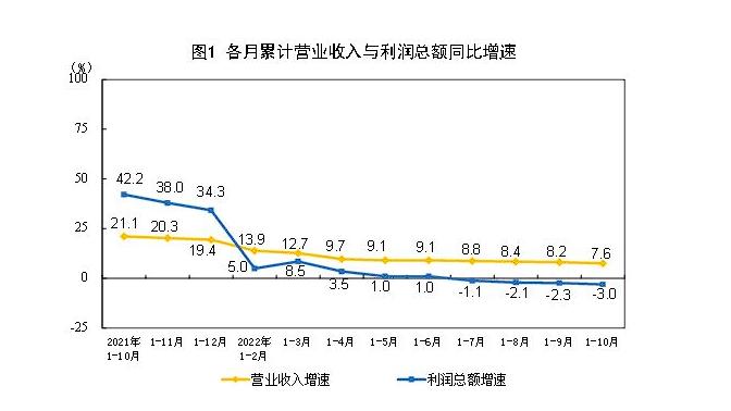 國家統(tǒng)計局數(shù)據(jù)顯示,今年前10個月,全國規(guī)模以上工業(yè)企業(yè)營業(yè)收入同比增長7.6%,利潤同比下降3%。國家統(tǒng)計局工業(yè)司高級統(tǒng)計師朱虹解讀工業(yè)企業(yè)利潤數(shù)據(jù)時表示,總體看,工業(yè)企業(yè)利潤下降,結(jié)構(gòu)繼續(xù)改善,部分中下游行業(yè)利潤回升明顯。但也要看到,近期國內(nèi)疫情散發(fā)多發(fā),世界經(jīng)濟衰退風(fēng)險加劇,工業(yè)企業(yè)效益恢復(fù)面臨較大壓力。